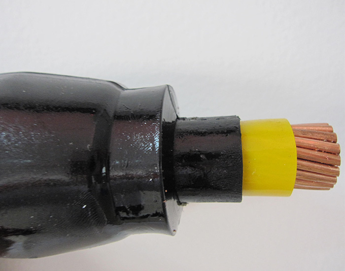 1、在預先測量好的尺寸出切開護套和絕緣,根據(jù)不同截面大小電纜切開護套和絕緣的尺寸不同;